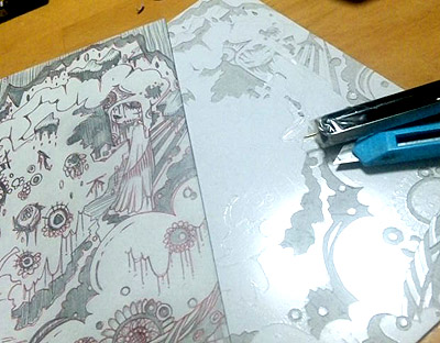 破けましたw 写メでわかるように厚紙に彫るんですw