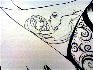 こうやって人物など狂いすぎると危ういものは軽く鉛筆でラフってます。